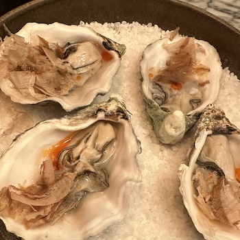 Quant aux solides de ce Liquide, on est loin de la « mangeaille » des tavernes capétiennes. Il y a de la malice dès l’entrée avec ces huîtres surprises un peu relevées avec de la bonite, des saint-jacques qui jouent à cache-cache, de la joue de bœuf moulée à l’emporte-pièce et qui, sous son nappage de bordelaise, pourrait ressembler à un lièvre à la royale.