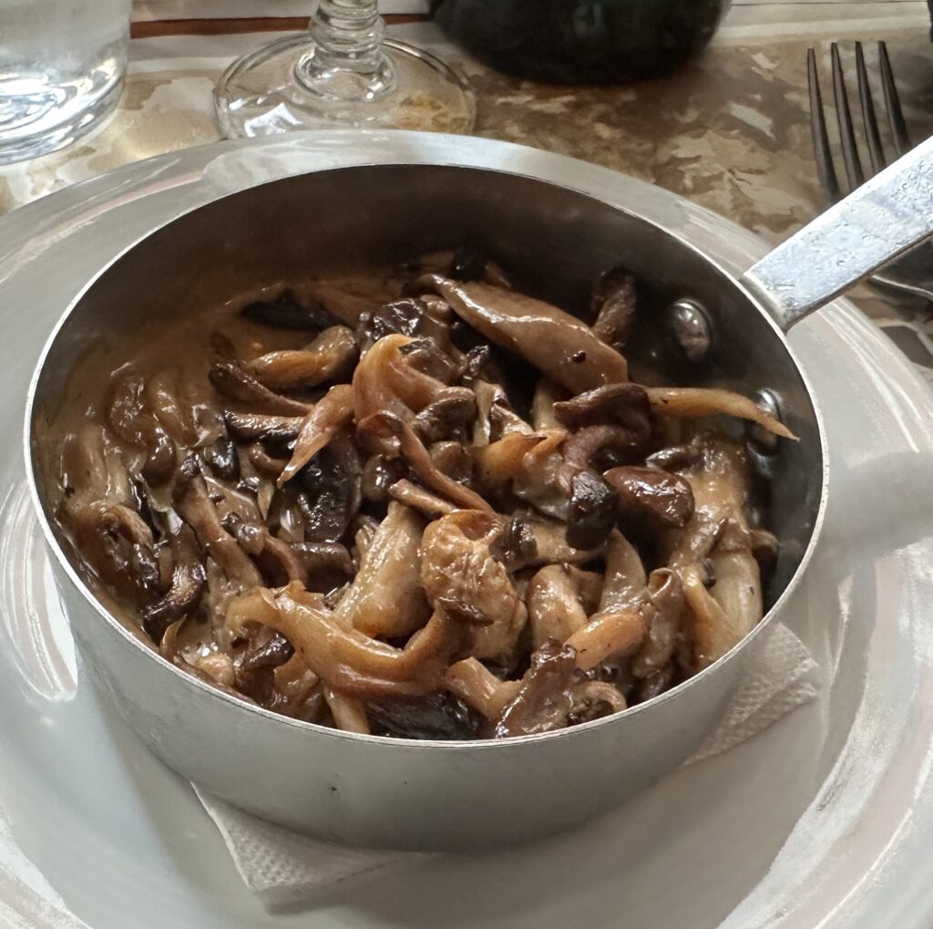 Pour le reste, son talent ne s’exprime pas que pour la tête de veau. Ainsi de sa terrine du jour où d’une fricassée de pleurotes qui vous enivre d’arômes de sous-bois… Sans oublier l’escalope de veau ou la cuisse de poulet de Normandie sauce cèpes.