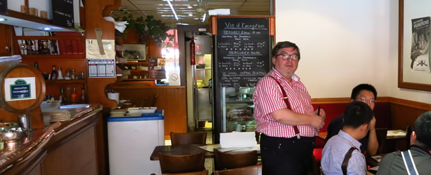 Le patron, Bernard Roque-Bouges est donc de Laguiole. Ca ne se voit pas du premier coup d’œil, puisque l’affaire évoque plutôt son lyonnais genre bouchon avec des ceps de vignes et une carte de vins de propriétés où figure toutefois du Marcillac de chez Philippe Teullier. Comme l’indice d’une origine aveyronnaise…