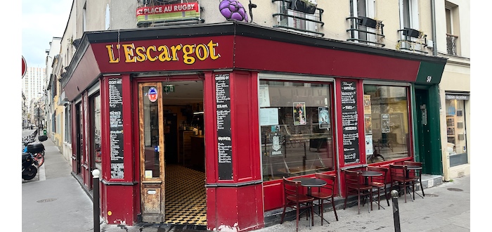 Près des Buttes-Chaumont, au cœur du « village Jourdain », cet Escargot va à son rythme depuis 20 ans. Partant d’un vieux bistrot d’angle remontant à 1864, Fred, chef formé au Centre d’Excellence Des Professions Culinaires (Ceproc) voisin, a fait un drôle d’endroit, coloré et sacrément patiné qui parvient à tirer le sourire à une large brochette de représentants de l’espèce humaine. Dont beaucoup de jeunes, attirés notamment par une collection bon marché de rhums et autres cocktails.