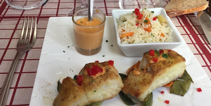 Le midi, une formule à 17 € propose au choix poisson et viande mais la touche du patron s’exprime dès l’entrée comme un velouté de légumes crème au citron, parfait un jour de canicules.