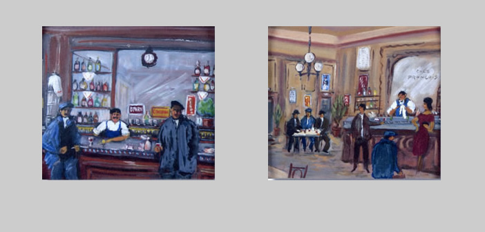 peinture_villaret2«Pas de média envahissants, pas de télévision, pas de presse à scandales, ou si peu, un simple poste de radio à galène et le “bistrot”, petit monde à part où chacun vous apportait sa façon de voir les choses et les événements en les racontant souvent d’une façon savoureuse.» Voilà comment André Villaret évoque les bistros de son enfance.