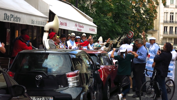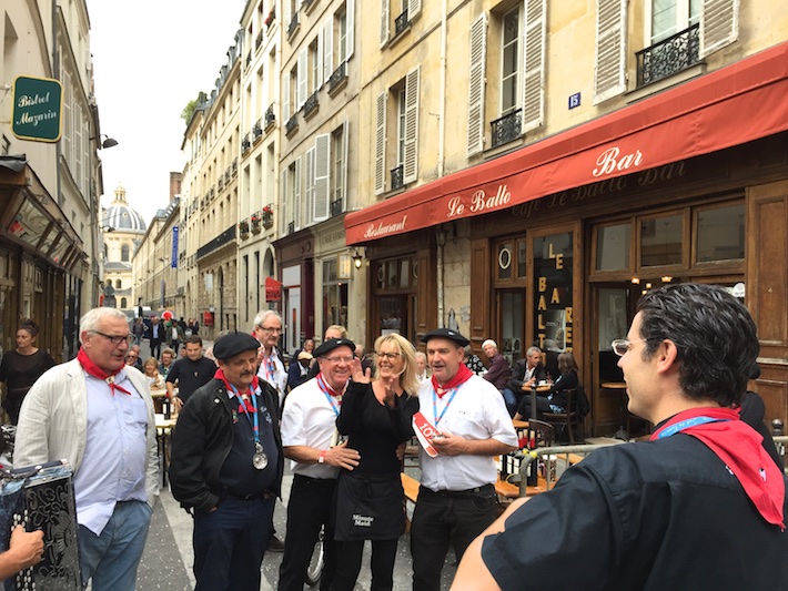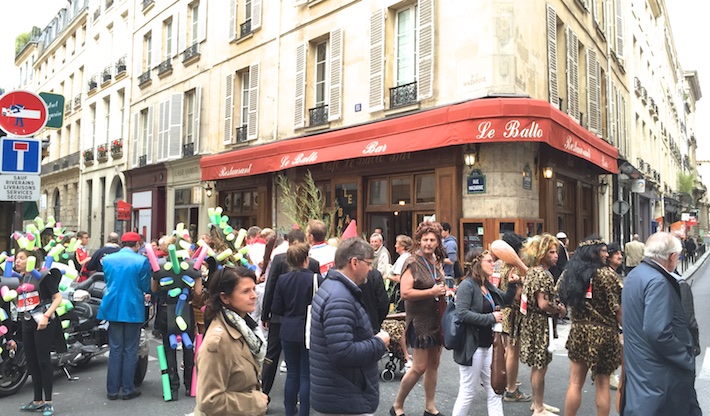 230 participants, répartis en une vingtaine d’équipes, ont sillonné les rues du quartier dans une ambiance de carabins. Il y avait des légionnaires romains, des hommes de cro-magnon, des Blues Brothers, des vrais Basques et Landais comme Alain Dutournier ou Pierre Oteiza reprenant les chants d’Euskadi au fond des petites cours, des techno-boy, des Ecossais auvergnats, des membres du Racing, d’autres du Scuf… En guise de carburant, un rouge languedocien signé Gérard Bertrand a visiblement bien rempli son office pour conduire tous les marathoniens sains et saufs jusqu’à l’étape finale : la place Saint-Sulpice.