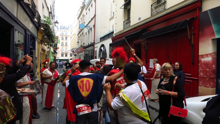 Les « Frères de la Côte » en toges romaines suivis des « Bues Brothers » sont arrivés les premiers. Prochaine épreuve en mai 2017 pour fêter les 30 ans du Marathon. Ça laisse vingt mois pour s’entraîner. A raison de deux marathons par jour, ça en fait des bistrots à visiter !