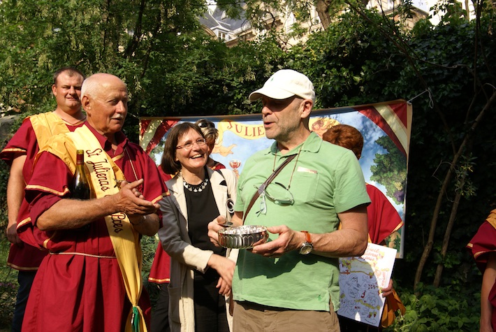 Il règne dans ce petit square au pied de l’église romane de saint-Germain des Près et durant le dîner au Procope qui s’en est suivi, une gaieté bon enfant et une sincérité à porter au crédit des hommes et des femmes de Juliénas qui montent à Paris chaque année organiser cette cérémonie.